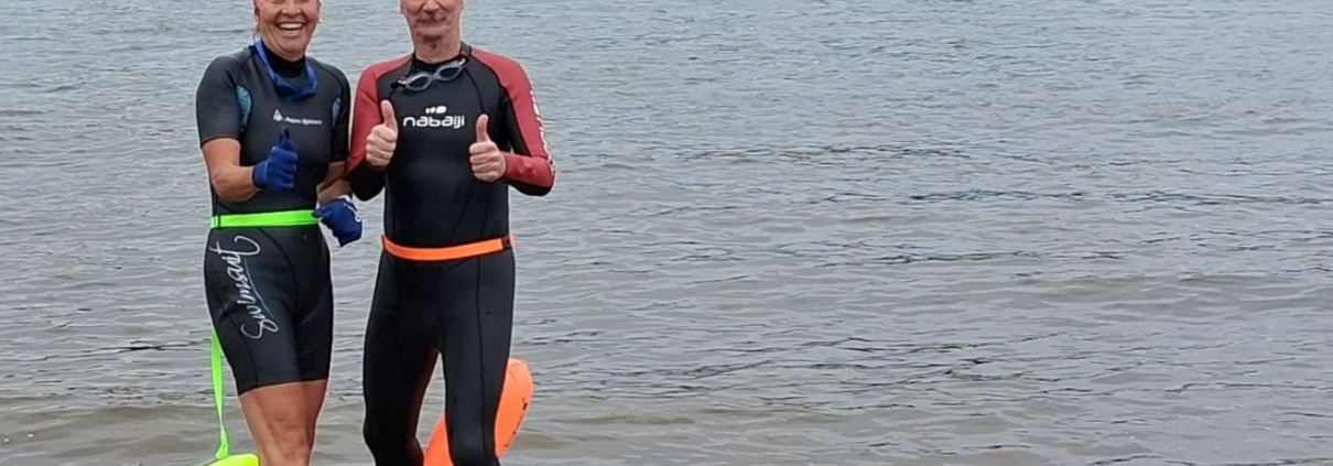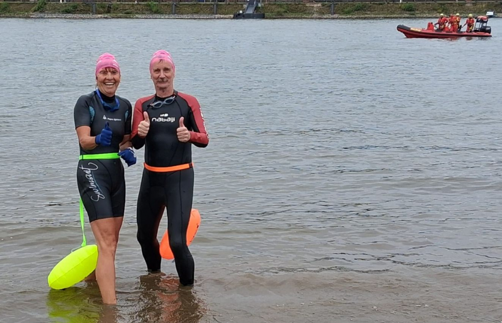 Am 21.09.2025 nahmen Jürgen Titze und Iris Jaschky-Sterzenbach an einem äußerst besonderen Event teil. Es ging um überwachtes Schwimmen im Rhein. Bei angenehmen Außentemperaturen war auch die Wassertemperatur um die 18°C. Die Strecke von insgesamt 2,5 km stromabwärts wollte von beiden bewältigt werden. Schon beim Einstieg an der Südbrücke in Bonn verlor man sich aus den Augen.