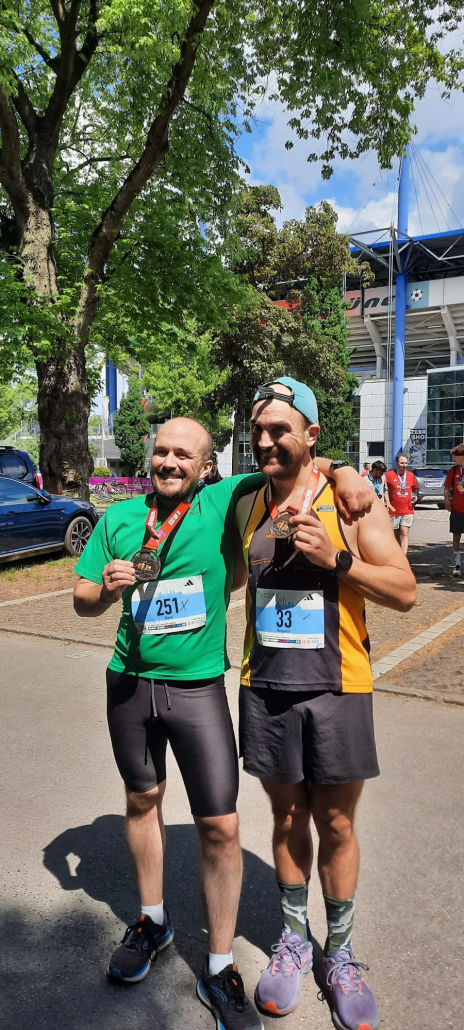 Troisdorf, Duisburg: auf ebener und asphaltierter Strecke fand am vergangenen Sonntag der 42. Rhein-Ruhr-Marathon statt. Spontan meldete sich Jonas Schäfer an, um gemeinsam mit seinem Bruder David den Marathon zu laufen. Ca. 8000 Teilnehmer nahmen an den vom Stadtsportbund Duisburg e.V. angebotenen Distanzen (Staffellauf, Handbiker, Inliner, Halbmarathon, Marathon) teil. Unter den ca. 30.000 Supportern am Straßenrand befand sich auch André Wilms, der seine beiden Neffen David und Jonas anfeuerte. Jonas, der seinen Bruder David „zu einer 4:09:46 gezogen hatte“, freute sich über das gemeinsame Lauf-Erlebnis und Ergebnis. – Es wird sicherlich nicht der letzte gemeinsame Lauf der beiden Brüder werden?