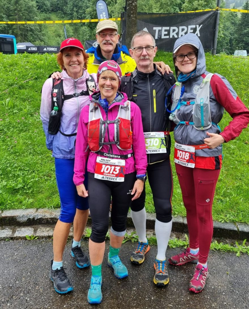 Der Wetterbericht zeigte bereits im Laufe der Woche, dass mit Starkregen zu rechnen sei. Bei strömendem Regen fiel am Samstag um 10.00 Uhr der Startschuss für den Widderstein Trail. Katharina Axmacher, Christiana Lange, Iris Jaschky und Jürgen Titze starteten trotz der kühlen und nassen 11 Grad und wurden von Angehörigen und vielen Freunden am Wegesrand angefeuert. Regen, Graupel und der eisige Wind waren ständige Begleiter. Zunächst führte der Weg entlang der Breitach, langsam ansteigend durchs Gemsteltal, über Felsen, durch Bäche, mit knackigen Anstiegen vorbei an der Widdersteinhütte zum Hochalppass. Von dort ging es über die Bärgunter Mittelalpe, die Bärgunthütte zurück nach Baad ins Ziel. Die 407 Finisher wurden im Ziel mit heißen Getränken und verschiedenen Snacks verpflegt.