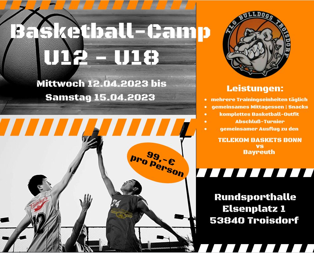 In den Osterferien findet wieder unser Basketball Camp statt! Wir freuen uns auf viele Teilnehmer:innen, die mit uns gemeinsam Basketball erleben. Im Preis inbegriffen sind das Training vor Ort, Verpflegung, ein Trikotsatz (Shorts & Shirt) sowie die Eintrittskarten für das Spiel der Telekom Baskets Bonn.