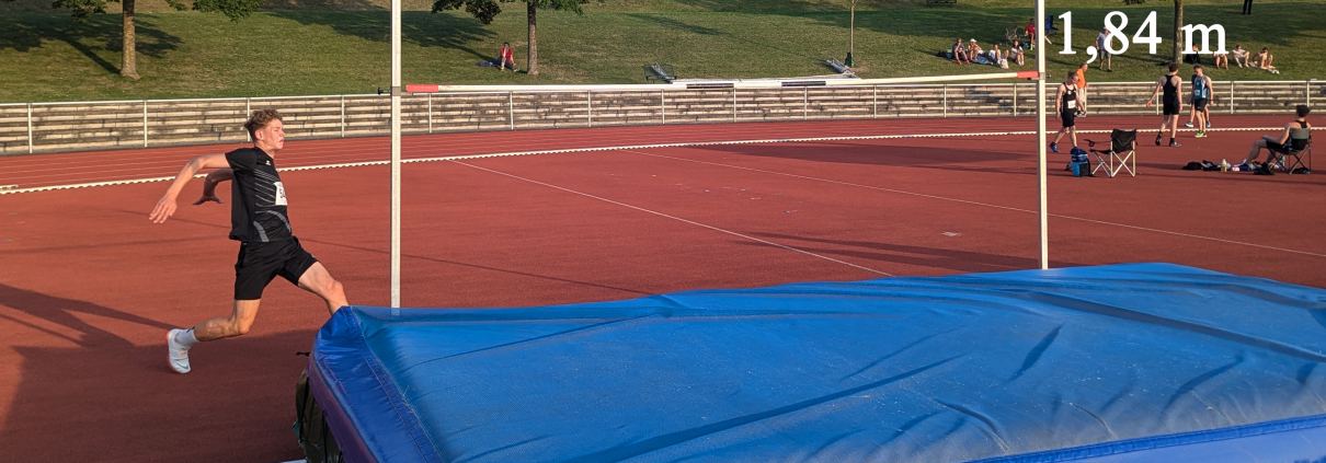 Ein Highlight des Tages war sicherlich das hochklassige Hochsprung-Duell zwischen Jannik Gerhardy und Jan Ungeheuer vom Turnklub Grevenbroich, der als amtierender Deutscher Meister im Hochsprung der Altersklasse M15 ausschlaggebend für die Leistungsexplosion von Jannik war. Nach seiner langen Verletzungspause wollte Jannik den Nordrhein-Vergleich als Top-Wettkampf zum Saisonende nutzen, um seine guten Trainingsleistungen unter Beweis zu stellen. Aus Trainingsgründen stieg Jannik bereits bei 1,64 m in den Hochsprungwettkampf ein, stand 10 Versuche später bei sensationellen 1,88 m und überquerte diese Höhe gleich im ersten Versuch. Mit diesem hervorragenden Sprung sicherte er sich den Sieg im Wettkampf und direkten Duell, da der deutsche Meister Jan Ungeheuer diese Höhe erst im 3. Versuch meistern konnte. Beide Athleten scheiterten dann an der nächsten Höhe von 1,92 m und Jannik konnte sich mit seiner neuen Bestleistung hinter dem Überflieger aus Grevenbroich auch auf Platz 2 der deutschen Bestenliste einreihen.