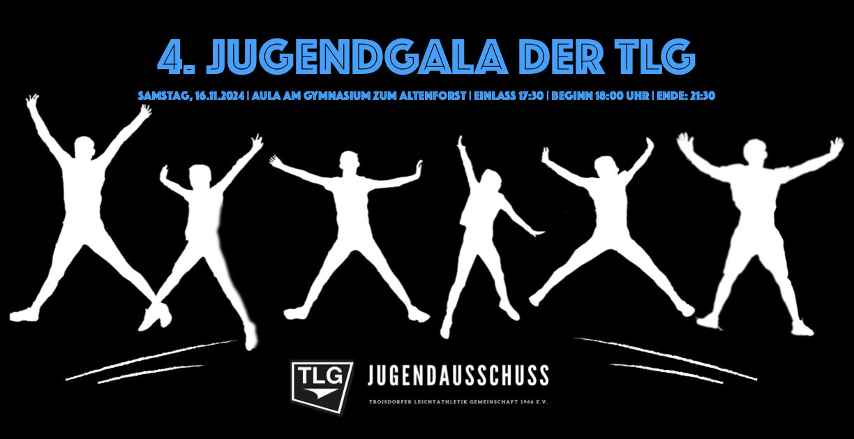 Am 16.11.2024 findet die 4. Jugendgala der TLG statt. Hierzu lädt der Jugendausschuss alle Kinder und Jugendlichen der TLG ein. Sei dabei, wenn wir in einer 2-stündigen Liveshow mit anschließender Party den Saal zum Beben bringen. Lass Dich überraschen, was in diesem Jahr passiert. Eins sei aber schon verraten: die 4. Jugendgala wird ihre vorangegangenen Veranstaltungen in keinster Weise enttäuschen!