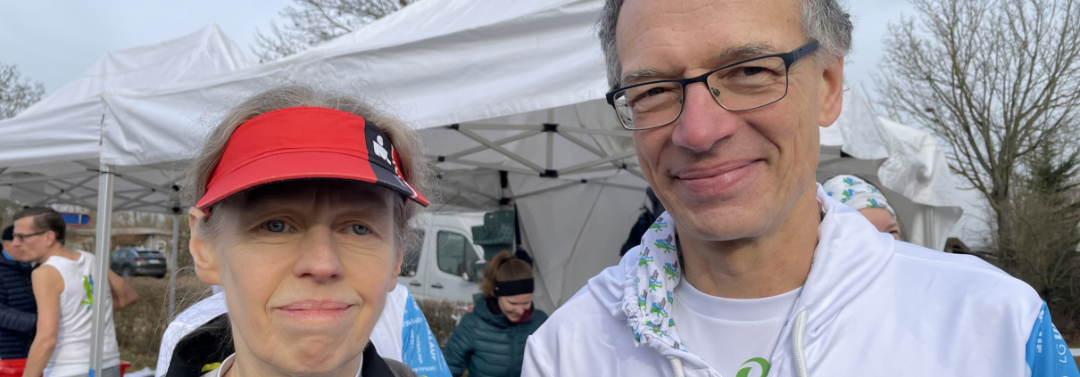 Troisdorf, Ubstadt-Weiher: am letzten Samstag fanden in Ubstadt-Weiher bei wunderbarem Wetter die diesjährigen Deutschen Meisterschaften über 50km statt. Gelaufen wurde auf einer schnellen, schönen 5 km-Runde rund um den Hardtsee. Unter den insgesamt 745 Starterinnen und Startern waren Renate Seidel und Michael Irrgang von der Troisdorfer LG. Beide nutzen die guten Bedingungen und ihre gute Form zu persönlich guten Zeiten. So ist Renate seit 6 Jahren nicht mehr so schnell unterwegs gewesen und Michael sogar seit 7 Jahren. Aufgrund der Meisterschaft war das Startfeld nicht nur groß, sondern auch qualitativ spitzenmäßig besetzt, sodass es bei Männern und Frauen neue Streckenrekorde (2:53 und 3:21) gab, viele persönliche Bestzeiten und drei deutsche Rekorde fielen. Besonders beeindruckend war der Weltrekord des 85jährigen Werner Stöcker, der für die Strecke nur 5:21 Stunden benötigte! Renate lief ein gleichmäßiges, flottes Rennen, überquerte nach 4:23 Stunden das letzte Mal die Zeitmessmatte im Ziel und musste sich nur ganz knapp der Siegerin geschlagen geben. Sie belegte in der DM-Wertung unter 14 Frauen der Altersklasse W60 den hervorragenden zweiten Platz. Für die 50km-Spezialistin ein schöner Erfolg. Michael erzielte mit einer für ihn guten Zeit von knapp 4:48 Stunden in der DM- Wertung von 28 Finishern in seiner Altersklasse M60 den 13 Platz und freute sich über den gelungenen Wettkampfeinstieg in diesem Jahr.