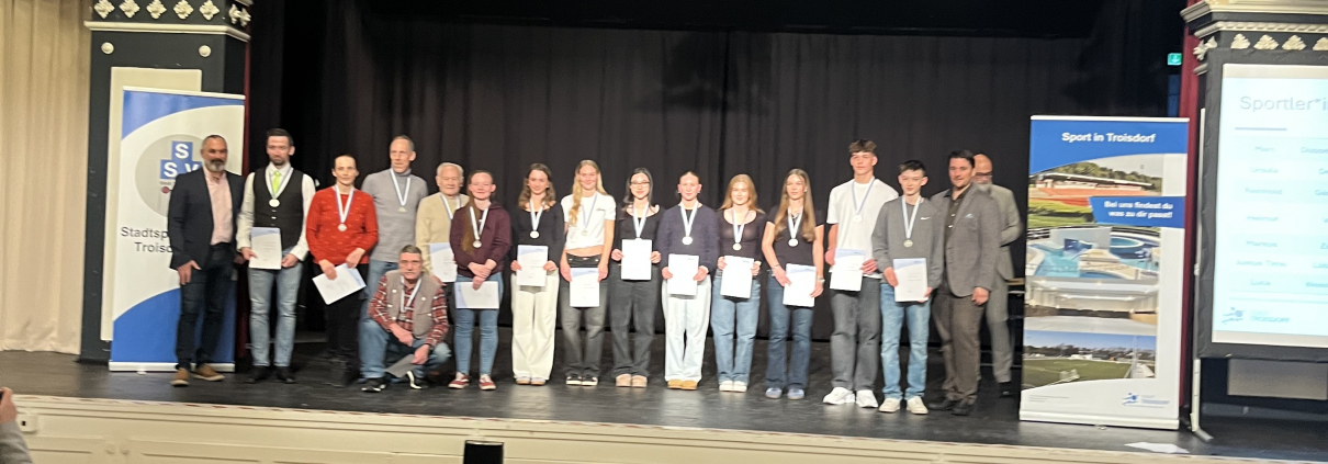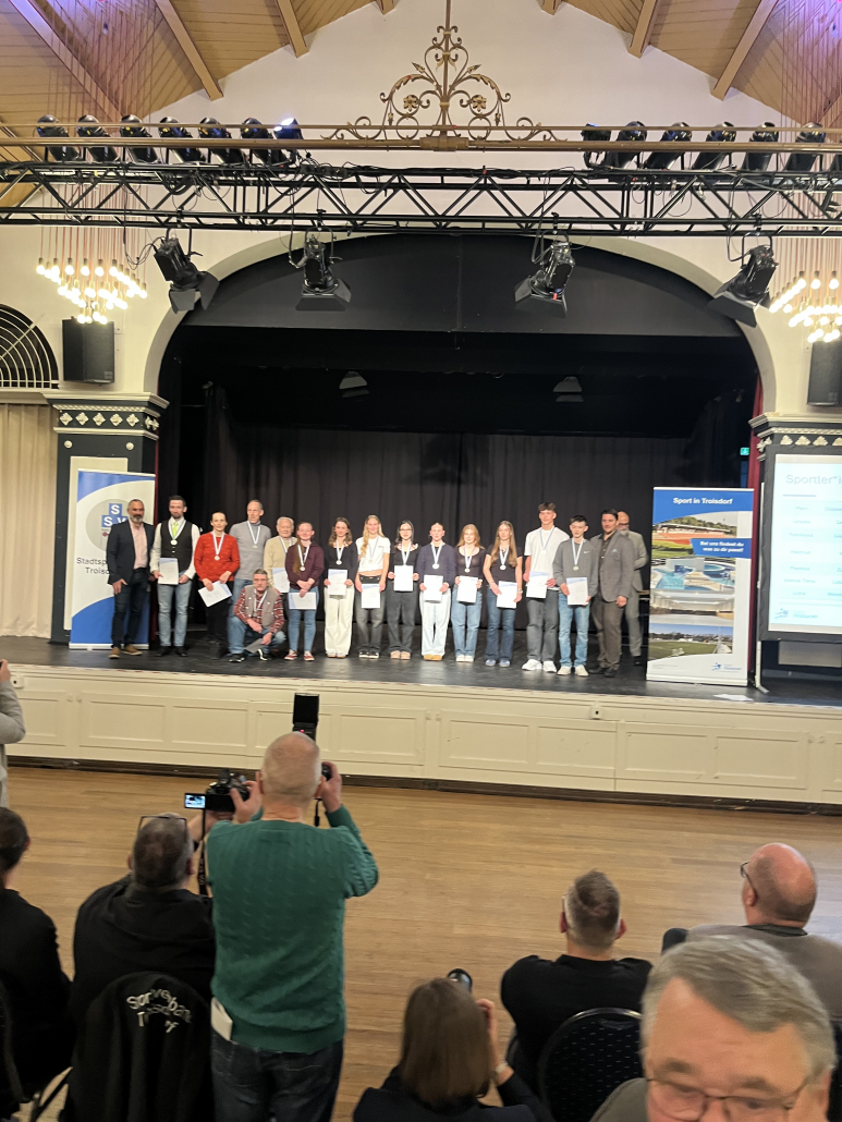 Mit verschiedenen Medaillen wurden 30 TLG’ler:innen am vergangenen Donnerstag bei der Sportlerehrung der Stadt Troisdorf in der KÜZ geehrt. Dabei war von erfolgreichen Sportler:innen auf Regionsebene bis hin zu Weltmeistern aus Reihen der TLG alles dabei. Besonders erfreulich war auch, dass alle Altersklassen von der U14 bis hin zu den Senior:innen vertreten waren. Auch 2 Funktionäre der TLG wurden für ihr Engagement ausgezeichnet.